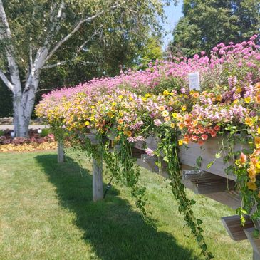Add color & life to your gardens with annual flower displays! Pansies in the spring, Begonias in the summer, Mums in the fall and so much more